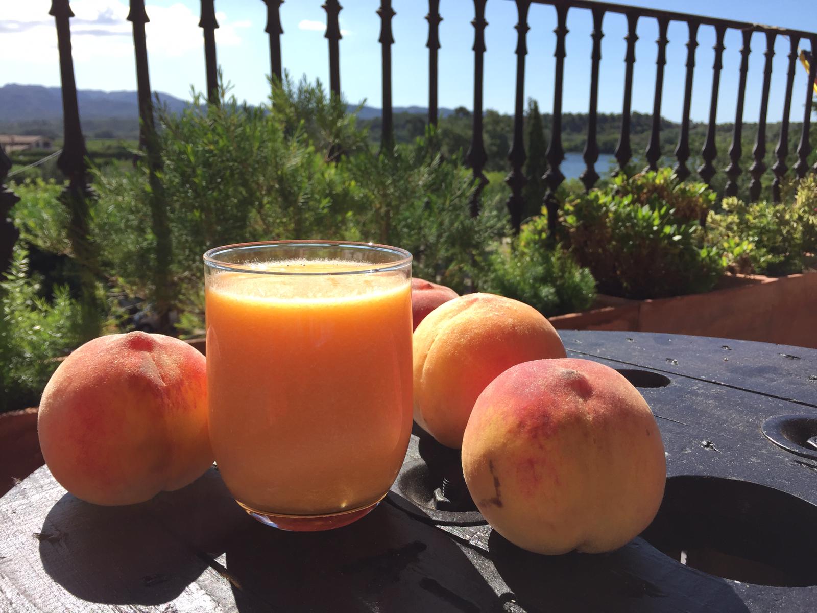 Aquí teniu un parell de receptes per quan hi ha tanta fruita al poble que tothom ne regala a tothom i ne mingem per a esmorzar, dinar, berenar i sopar. Esta recepta fresqueta ve de l’Anna de Ca Pepe que la fa pels xiquets i pels grans. Lo seu secret es la Thermomix però amb un túrmix normal també us quedarà bona.