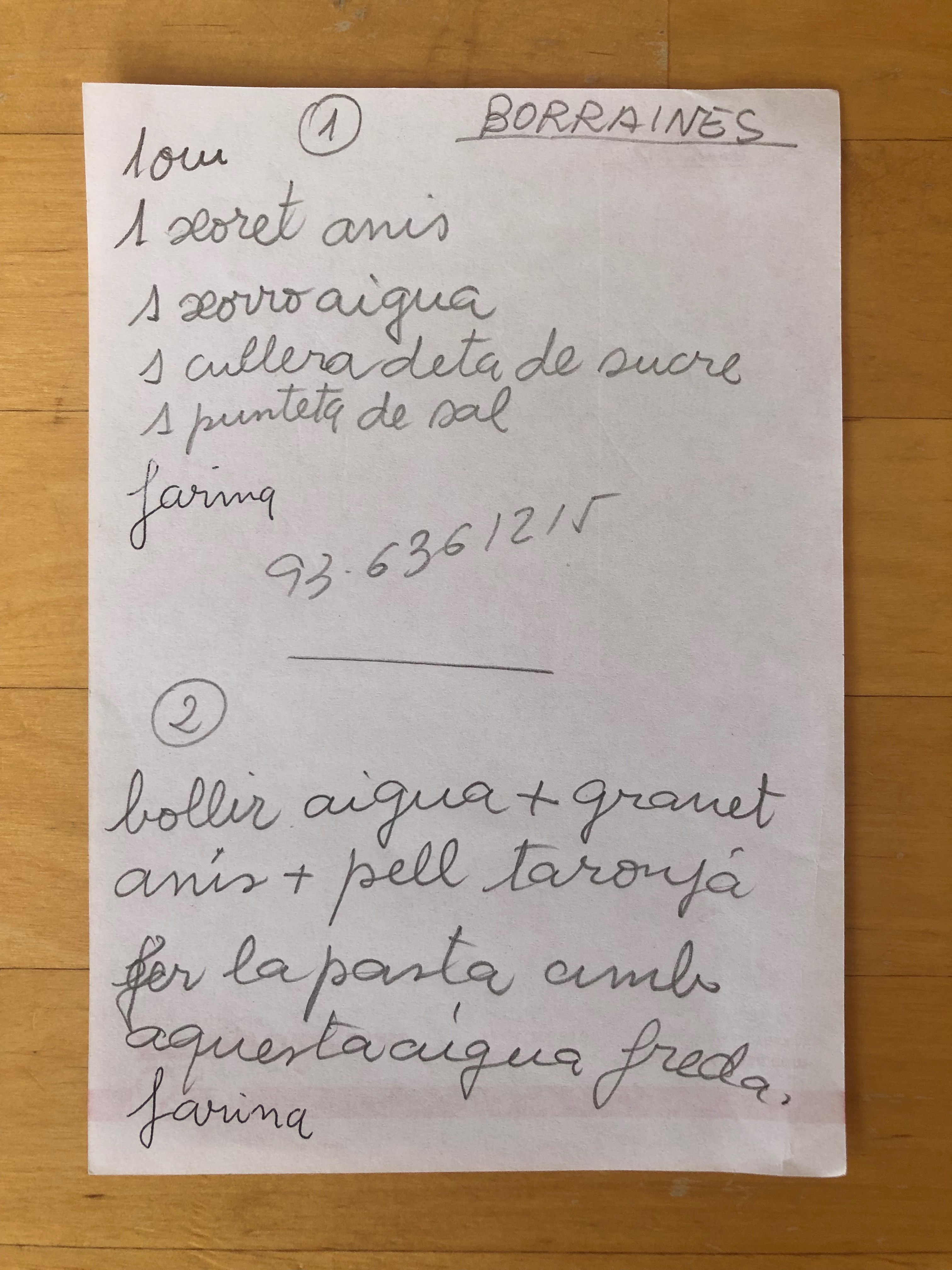 La recepta de més avall és la de la Pilar de la Borruna, escrita per la Carmencita del Calafat. Veureu que falten los granets d’anís a la llista d’ingredients, coleu-los después de bollir-los.