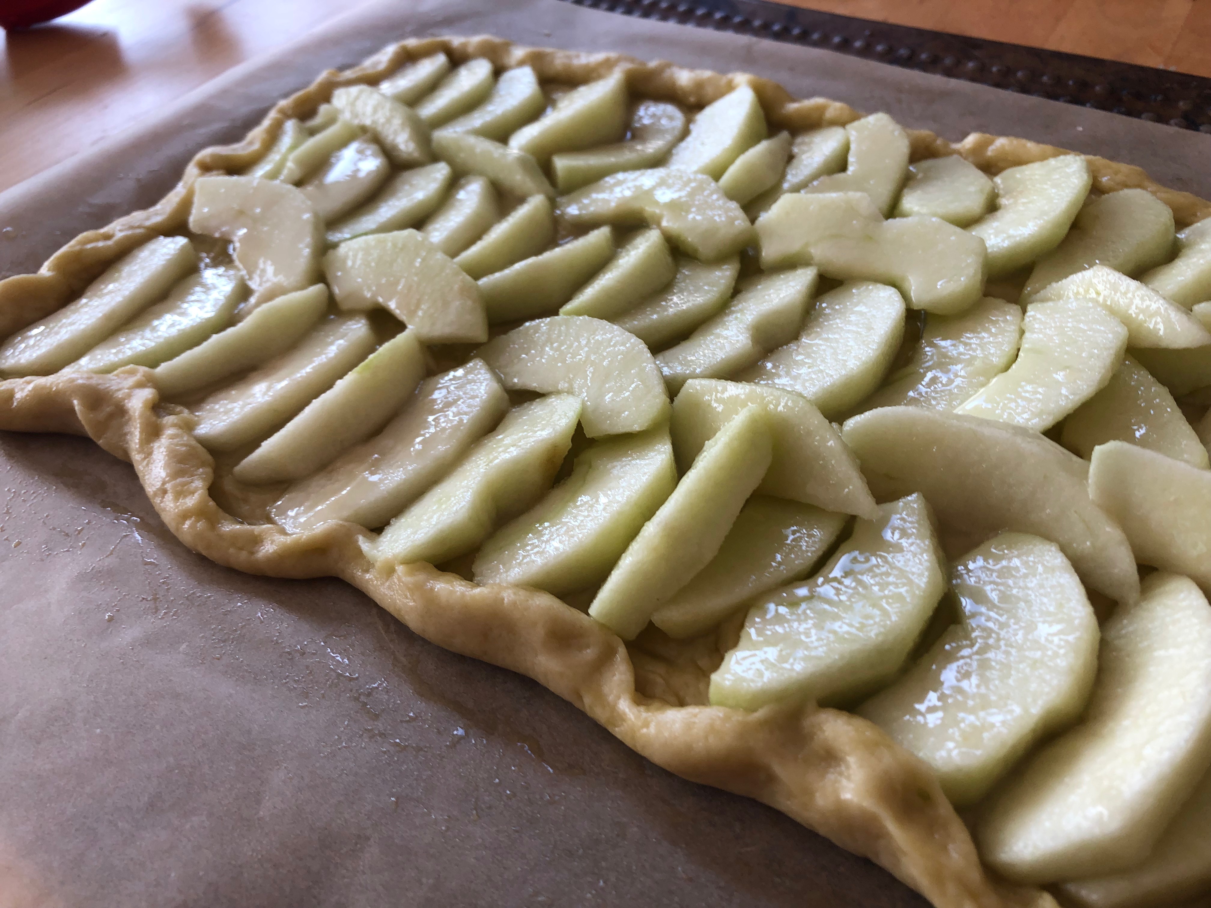 - Escampeu la pasta amb los dits en una llauna recoberta amb paper de forn.